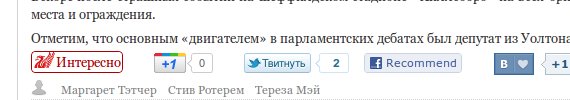 О «рейтинге» каждого материала говорит счётчик «лайков», который в большинстве случаев отображается в его верхнем правом углу. Счётчик не слишком привлекает к себе внимание, чтобы не мозолить лишний раз глаза. Кстати, по клику на счётчике можно быстро перейти к общему рейтингу материалов данного типа. Попробуйте, например, проделать это в (замечательной, кстати) статье о Крэйге Джонстоне.